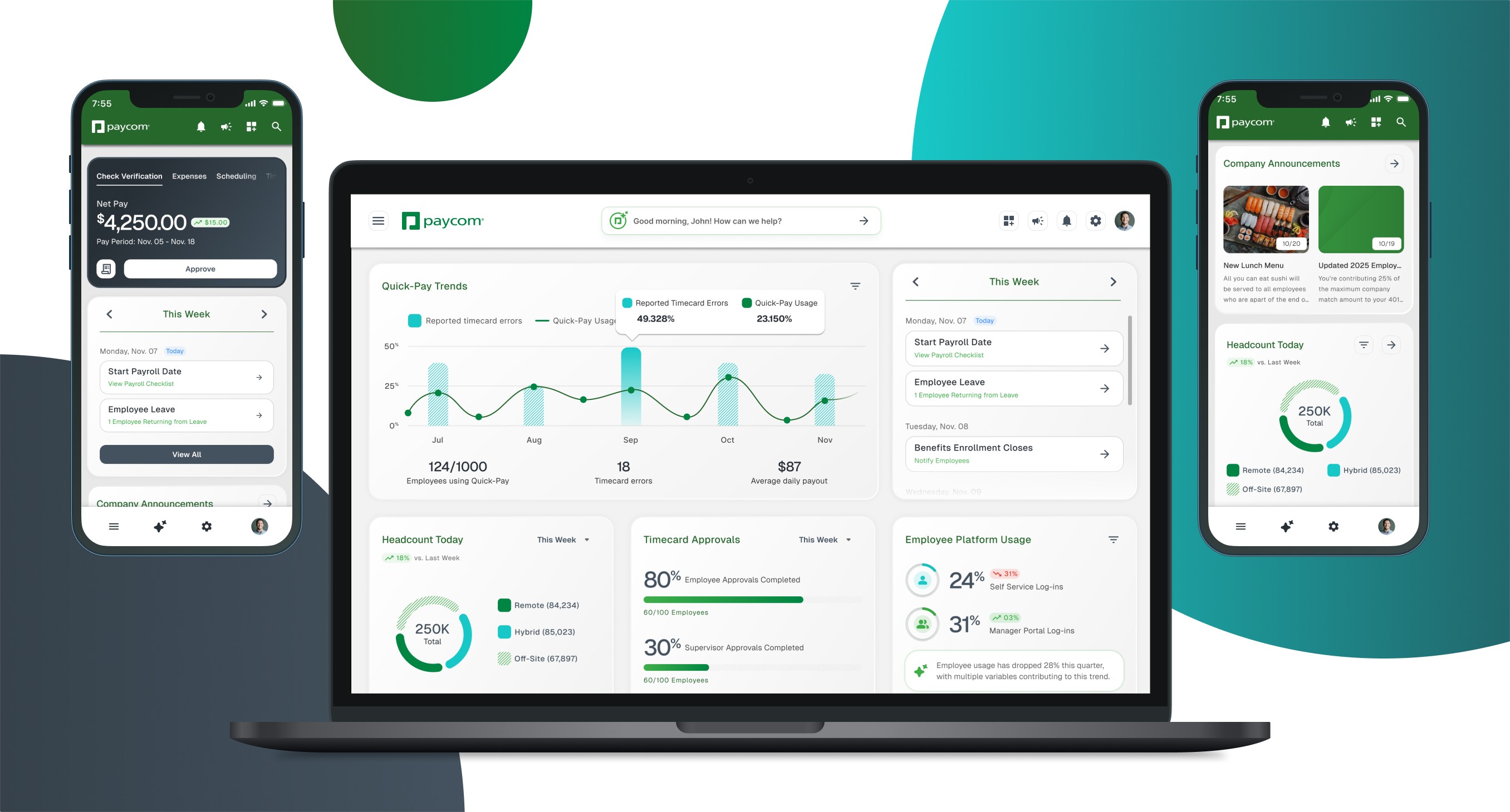 With the Redesign project, Paycom has the opportunity to create an actionable, customizable homepage dashboard experience focused on quick information and action.